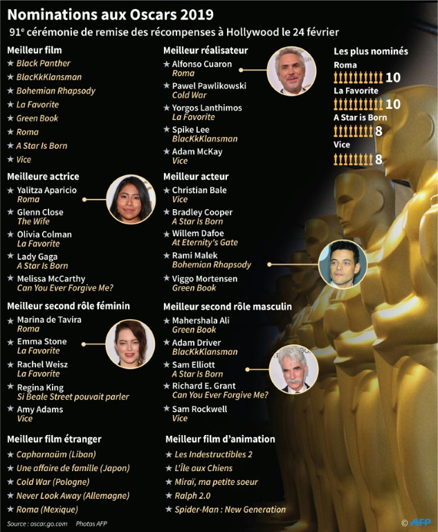 La soirée à forte composante musicale a par ailleurs récompensé des artistes issus des diverses minorités de la société américaine, comme l'acteur noir Mahershala Ali ("Green Book") qui a reçu pour la deuxième fois l'Oscar du meilleur second rôle masculin.