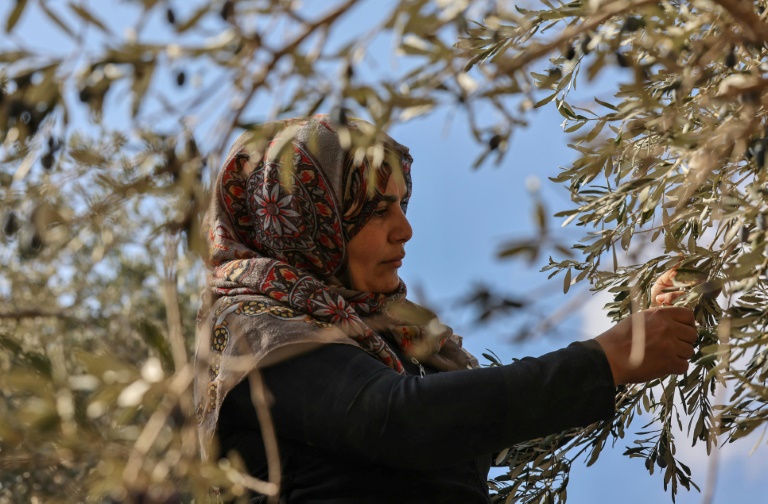 Dans un champ d'oliviers en lisière de son village de Cisjordanie occupée, Dalal Sawalmeh secoue délicatement les branches de ses arbres pour la récolte annuelle, sans entendre le bruit habituel des olives qui tombent au sol.