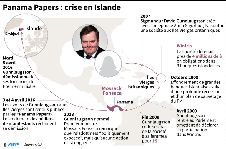 M. Gunnlaugsson faisait face à la bronca depuis dimanche et les révélations sur des millions de dollars qu'il a détenus via une société ayant son siège aux îles Vierges britanniques, appelée Wintris, avec son épouse, riche héritière.