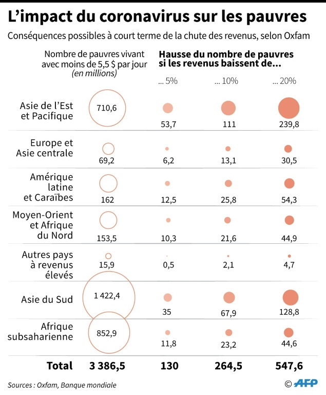 Avec une action immédiate et efficace, "nous pouvons contenir la menace de la pandémie pesant sur les pays les plus pauvres et certains des enfants les plus vulnérables", juge de son côté Inger Ashing, patronne de Save the Children. Ils sont "très vulnérables à des périodes de faim même courtes et à la malnutrition qui peuvent les affecter durant toute leur vie", avertit-elle dans le communiqué. Les deux organisations demandent notamment aux gouvernements d'étendre rapidement leurs systèmes de couverture sociale et l'alimentation dispensée dans les écoles pour limiter les effets de la pandémie.