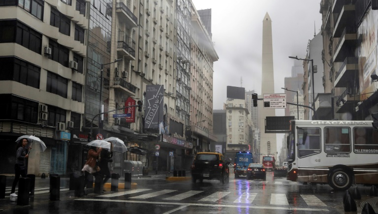 "Je ne sais pas comment on va faire. Si on ouvre ou pas. Toutes les tables sont réservées. Juste aujourd'hui...", peste Pedro Salinas, serveur du restaurant Tobago, dans le quartier de Boedo, à Buenos Aires. "C'est la première fois que je vois ça", dit-il en plaçant des seaux sous la pluie, pour recueillir de l'eau de pluie pour les WC de l'établissement.
