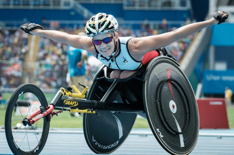 Atteinte d'une maladie rare qui lui paralyse les jambes, la Flamande a consacré son corps blessé au sport avec un franc succès: triple championne du monde en fauteuil (100 m, 200 m, 400 m) en 2015 et championne olympique sur 100 m à Londres en 2012, elle participe à Rio à ses derniers Jeux.