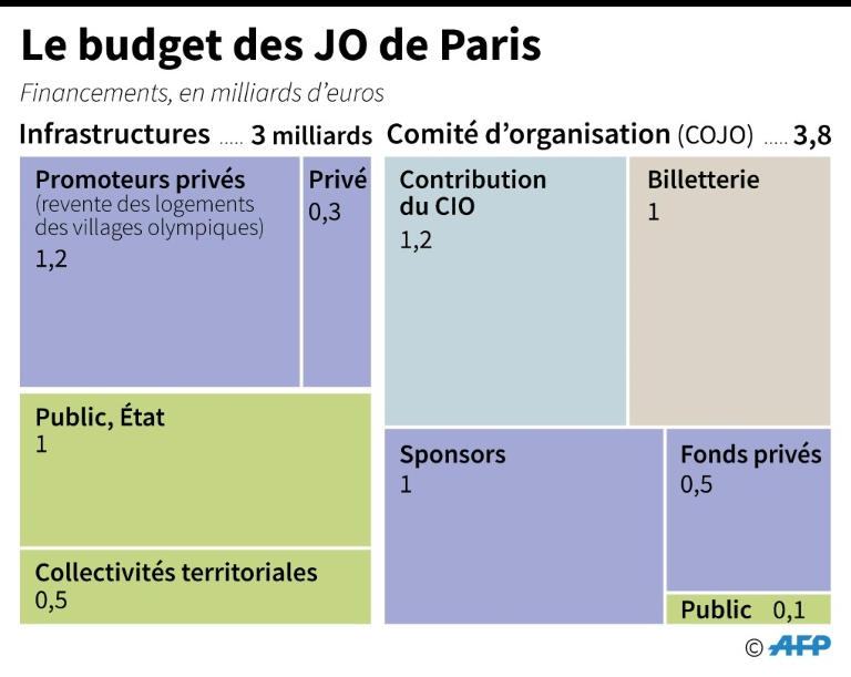 Le budget total prévu des Jeux Olympiques s'élève aujourd'hui à 6,8 milliards d'euros: 3,8 milliards sont issus du privé (CIO, sponsors, billetterie) pour organiser les compétitions -- un chiffre qui peut évoluer en fonction des recettes -- et 3 milliards sont consacrés aux chantiers, dont 1,5 milliard d'argent public. C'est cette partie qui est surtout visée par le rapport.