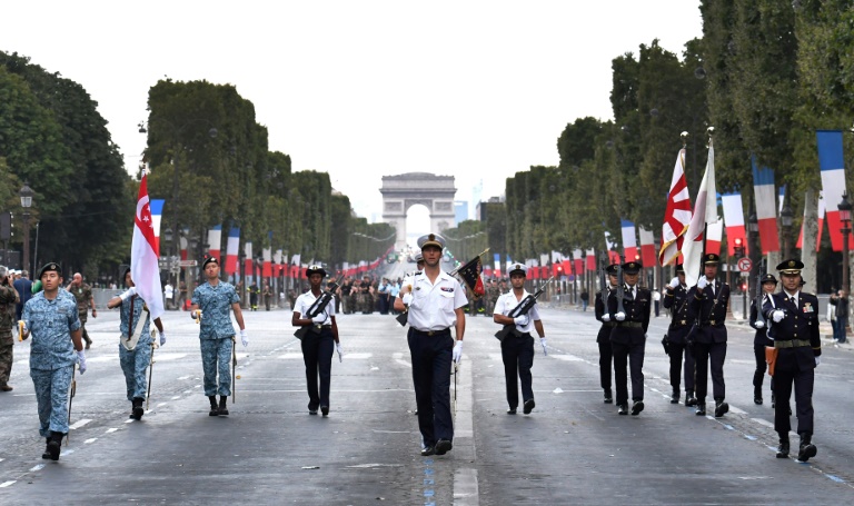 Après le président américain Donald Trump l'an dernier, le Premier ministre singapourien Hsien Loong et le ministre des Affaires étrangères japonais Taro Kono seront les invités d'honneur du chef de l'Etat, alors que la France a entrepris de renforcer ses liens militaires en Asie-Pacifique.