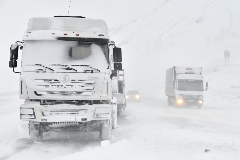 "Je me suis arrêté à Paris car les routes sont fermées, il y a trop de neige. Le temps qu'ils salent la route, je vais manger et me reposer", raconte-t-il à l'AFP au chaud dans la cabine de son camion.