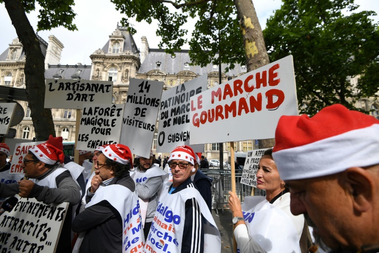 Lundi matin, plusieurs dizaines de forains, commerçants ou artisans d'art portant bonnet ou pour certains costume blanc et rouge de pères Noël, ont manifesté devant l'Hôtel de Ville pour accuser la maire PS de Paris Anne Hidalgo de "tuer le marché de Noël" et annoncer des futures manifestations de "pères Noël, partout".