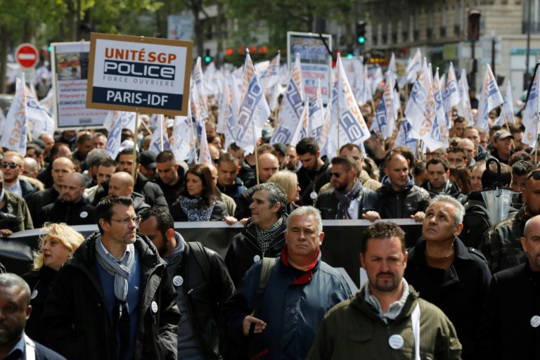 Aux cris de "Policiers attaqués, société en danger", "Rythme infernal, besoin d'une vie sociale" ou encore "Reconnaissance pour la police en France", les policiers veulent faire entendre leurs revendications aux deux candidats au second tour et rendre hommage à "Xavier et à tous nos collègues lâchement assassinés dans la guerre contre Daech", a dit M. Lefebvre.