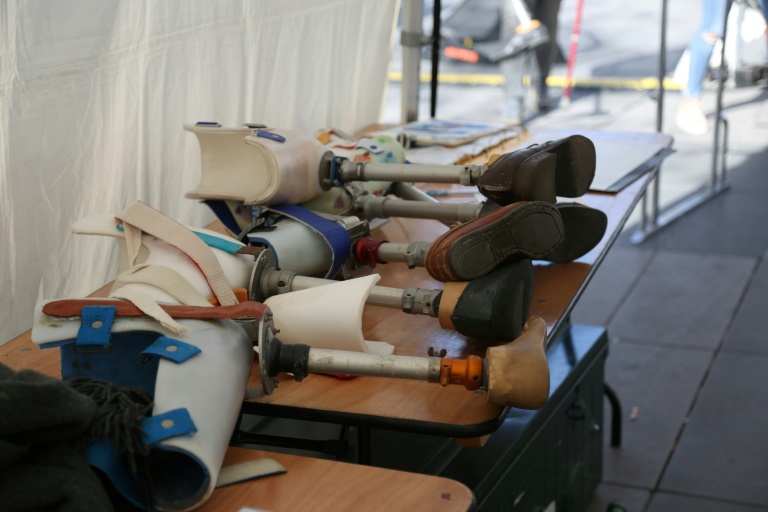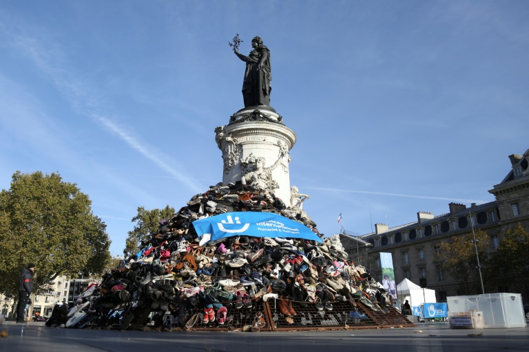 Une pyramide de chaussures sur la place de la République: les Parisiens étaient appelés samedi par l'ONG Handicap international à venir jeter leurs souliers usagés pour protester contre les bombardements de civils en zones de guerre, a constaté l'AFP.