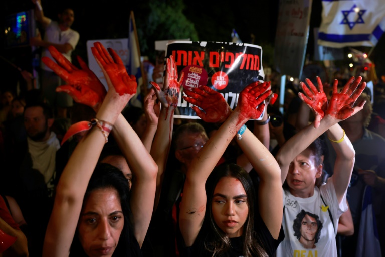 Jeudi, des Israéliens hostiles à la conduite de la guerre par le Premier ministre Benjamin Netanyahu sont de nouveau descendus dans la rue pour appeler à la libération des otages.