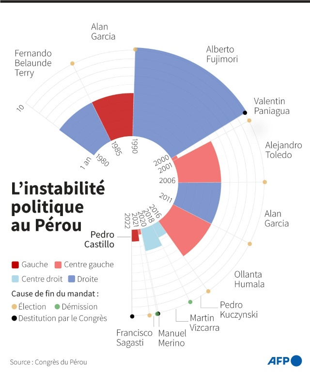 Après sa tentative ratée mercredi de dissolution du Parlement et d'instauration d'un Etat d'urgence, une manoeuvre qualifiée de "coup d'Etat", Pedro Castillo a été placé en détention provisoire jeudi pour sept jours sur réclamation du Parquet qui le poursuit pour "rébellion" et "conspiration".