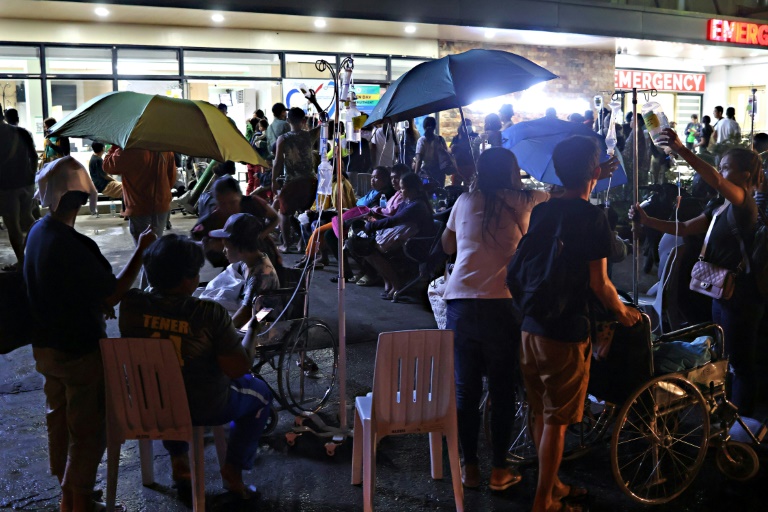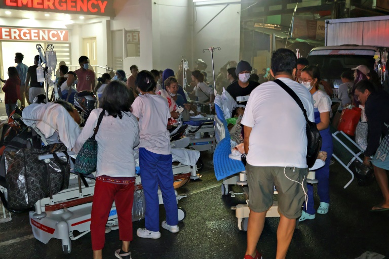 Dans la ville de Butuan, des aides-soignants ont évacué d'un hôpital des patients sur des brancards et des fauteuils roulants, leurs poches de perfusion et d'intraveineuse suspendues à des supports.