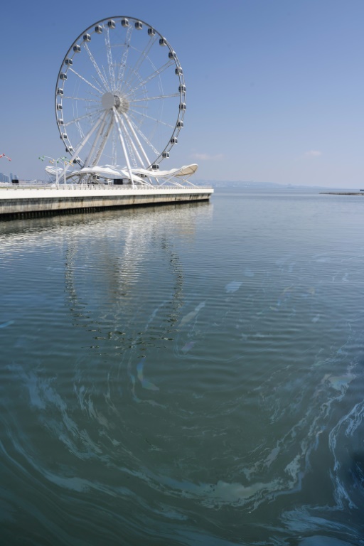 A quelques kilomètres du centre-ville de Bakou, des pêcheurs attendent les poissons au bord de la route côtière. Dans l'eau, de petites gouttes de pétrole font régulièrement surface, s'étalant en striures aux reflets multicolores. "Certains poissons semblent préférer l'eau polluée. Ils ont donc tendance à se rassembler ici", explique Rachad, 26 ans, petit bonnet vissé sur la tête, tout en reconnaissant: "L'eau est sale". Un sac plastique s'est pris dans son hameçon.