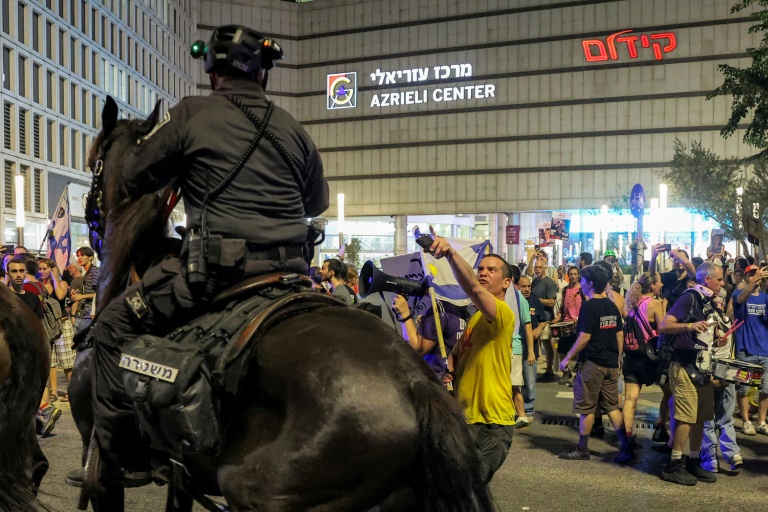 Samedi soir, des dizaines de milliers de personnes sont de nouveau descendues dans les rues de Tel Aviv, pour exiger un accord assurant le retour de tous les otages - dont 27 déclarés morts par l'armée - en échange de la fin des hostilités dans le territoire palestinien.