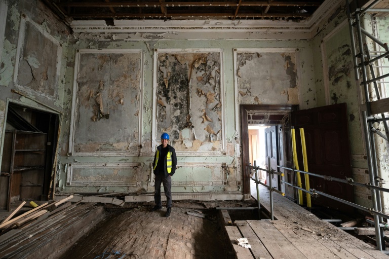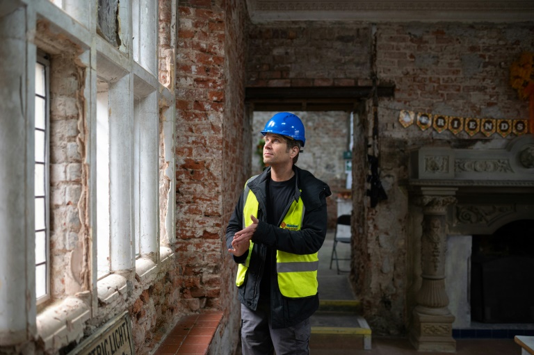 "Où que vous regardiez, il y a quelque chose à faire", dit cet homme de 52 ans que l'on imagine sans mal à Hollywood avec ses cheveux blonds et ses yeux bleus. "Je savais que c'était un projet massif, mais je n'avais aucune idée de la quantité de défis qui m'attendaient." En visitant les lieux, casque de chantier sur la tête, Hopwwod met en garde: un trou dans le parquet, une poutre mal placée.