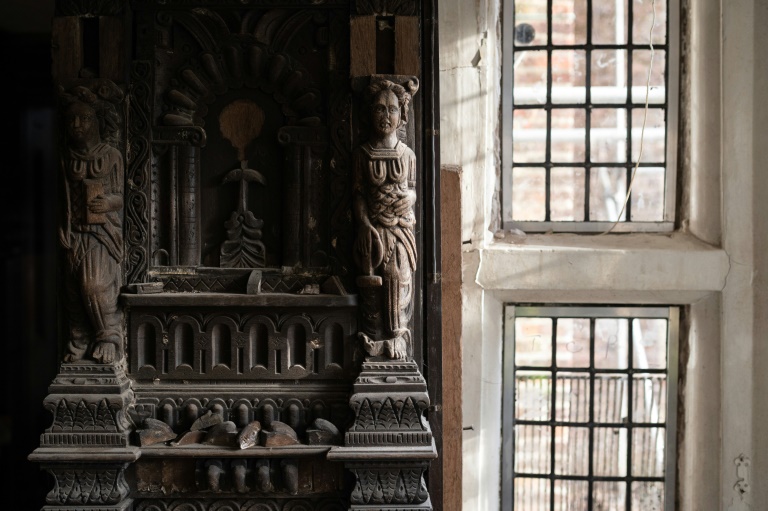 Des ouvriers s'affairent sur la façade. Les 39 cheminées sont en train d'être rénovées, le toit en partie aussi. L'urgence, ce sont les fenêtres. "C'est une course contre la montre, surtout avec les grosses pluies dans la région". Sans parler des chauves souris. Il montre les merveilles qui ont résisté au temps et aux voleurs: l'emblème familial sur les cheminées, les menuiseries sculptées centenaires, les vitres en forme de diamant.