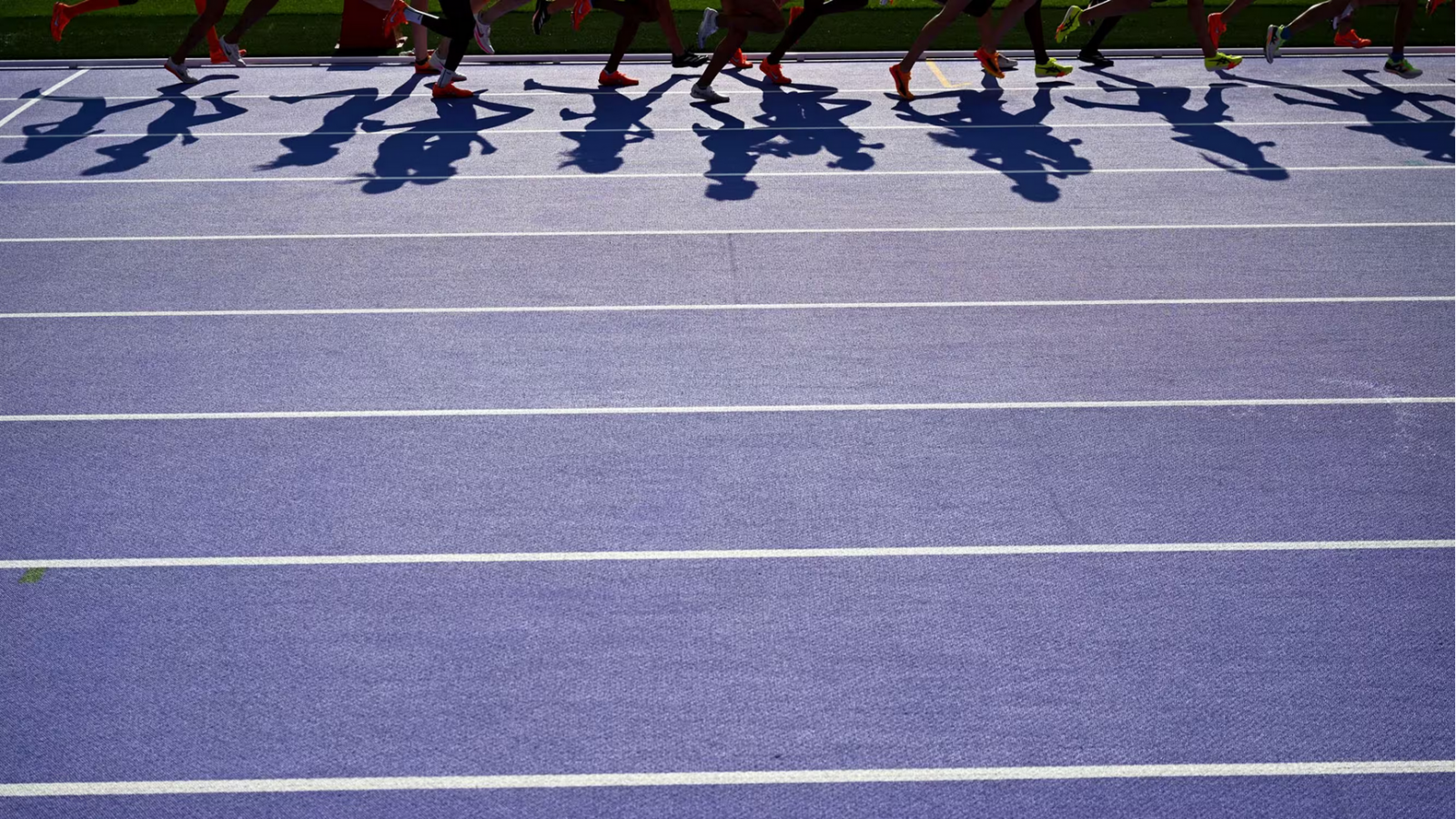 Des athlètes sur la piste d'athlétisme du stade de France pendant les Jeux olympiques de Paris 2024, le 2 août 2024. (KIRILL KUDRYAVTSEV / AFP)