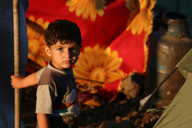 Installés à l'abri des habitations de fortune, des femmes et des enfants cherchent un peu d'ombre. Les plus chanceux sont arrivés en voiture ou à bord de minibus, encore bourrés de leurs maigres affaires emportées à la hâte: des matelas, des couvertures, parfois une bonbonne de gaz.
