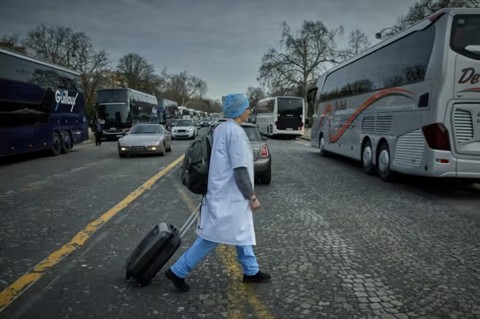 “On souhaite que le gouvernement arrête de taper sur la médecine libérale”, a déclaré Philippe Cuq président de l'organisation Le Bloc, peu de temps avant qu’une vingtaine de bus ne quitte la porte Dauphine à Paris pour la capitale belge avec les médecins à leur bord.