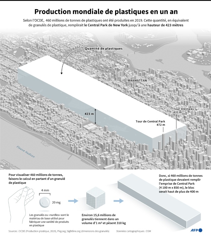 Car la planète a produit plus de plastique depuis 2000 que durant les 50 ans précédents, en majorité des produits à usage unique et des emballages. Et la tendance s'accélère: si rien n'est fait, la production actuelle, de quelque 450 millions de tonnes par an, devrait tripler d'ici 2060, selon les prévisions de l'OCDE. Or moins de 10% est recyclé.