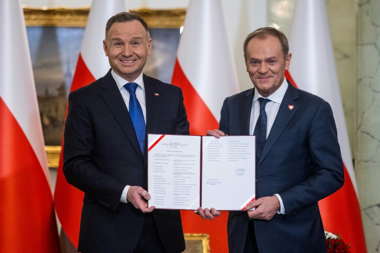 Lors de la cérémonie mercredi, le président Andrzej Duda, allié du précédent gouvernement PiS, s'est déclaré "ouvert" à une coopération avec le nouvel exécutif, tout en se déclarant attaché à son programme conservateur.