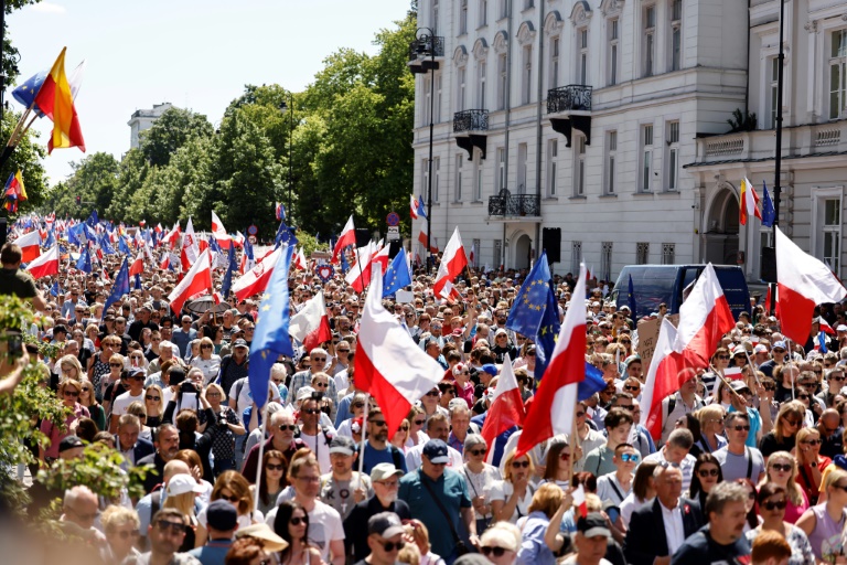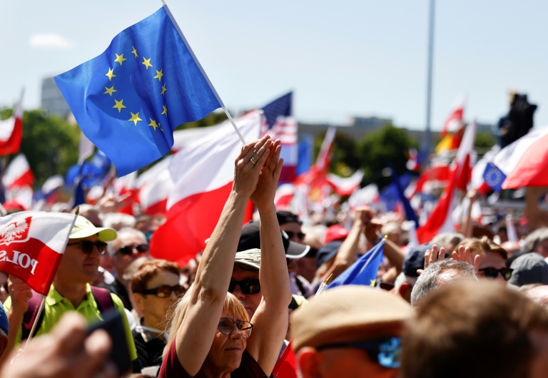 Un demi-million de Polonais sont descendus dimanche dans les rues de Varsovie pour manifester contre le gouvernement nationaliste populiste au pouvoir, à quelques mois des élections législatives d'automne, ont annoncé les organisateurs.