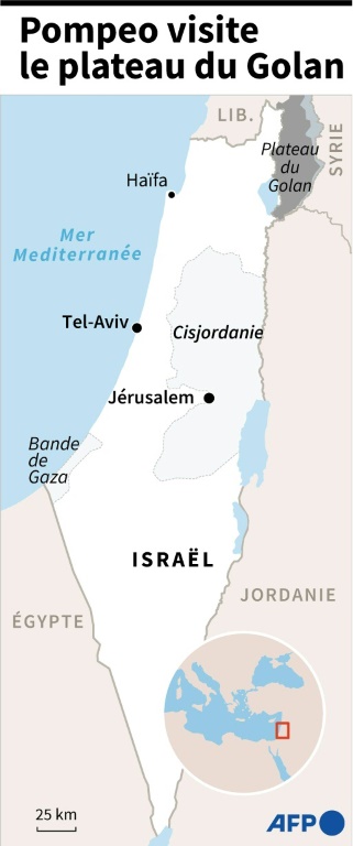 Après la visite dans la colonie, Mike Pompeo doit se rendre sur le Golan, pour la première visite d'un secrétaire d'Etat dans ce territoire syrien occupé par Israël depuis 1967. "Aujourd'hui j'aurai la chance de visiter le Golan. La simple reconnaissance de (ce territoire) comme faisant partie d'Israël était une décision d'une importance historique du président Trump en même temps qu'une simple reconnaissance de la réalité", a déclaré M. Pompeo lors d'un point de presse à Jérusalem avec le Premier ministre israélien Benjamin Netanyahu.