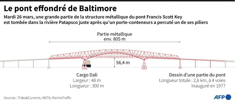 Le président Joe Biden s'est engagé à ce que "l'Etat fédéral paie la totalité du coût de la reconstruction" du pont, qui porte le nom de l'auteur des paroles de l'hymne national américain, en admettant que cela prendrait du temps.