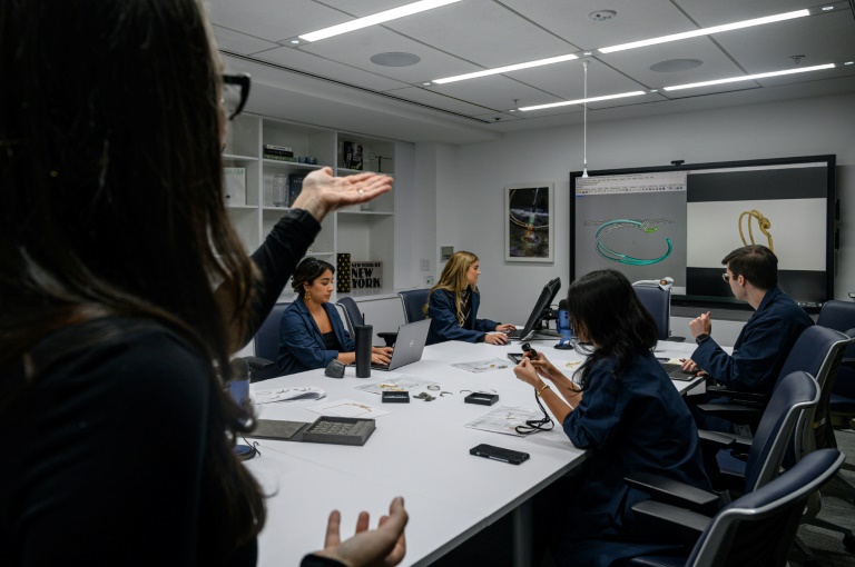 Dans l'atelier d'innovation du bijoutier Tiffany à New York, des artisans chevronnés fignolent à la main, sur leur établi en bois, les prototypes de bagues, pendentifs ou bracelets conçus quelques mètres plus loin par des techniciens et ingénieurs.