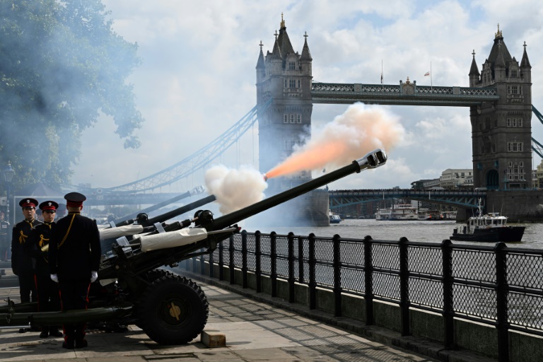96 coups de canons ont retenti à 12H00 GMT, tirés depuis Hyde Park mais aussi aux châteaux de Cardiff et Edimbourg, York, Portsmouth et à Gibraltar.