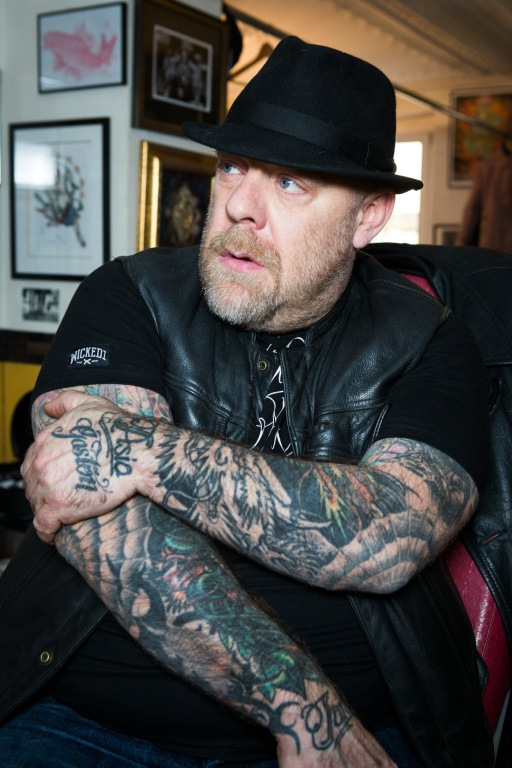 Depuis son "QG" de Pigalle, le tatoueur français à la réputation internationale, met la dernière main à l'organisation du Mondial du Tatouage qui attend plus de 30.000 passionnés et curieux à la Grande Halle de la Villette, de vendredi à dimanche.