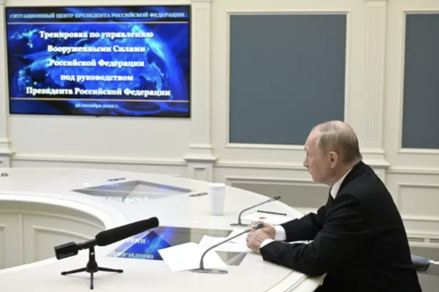 Vladimir Poutine a assisté mercredi depuis une salle de contrôle à l'entraînement des forces russes de dissuasion stratégique, soit des troupes chargées notamment de répondre à la menace en cas de guerre nucléaire. Si ce type d'exercice est mené périodiquement, celui-ci intervient en pleine offensive russe en Ukraine.