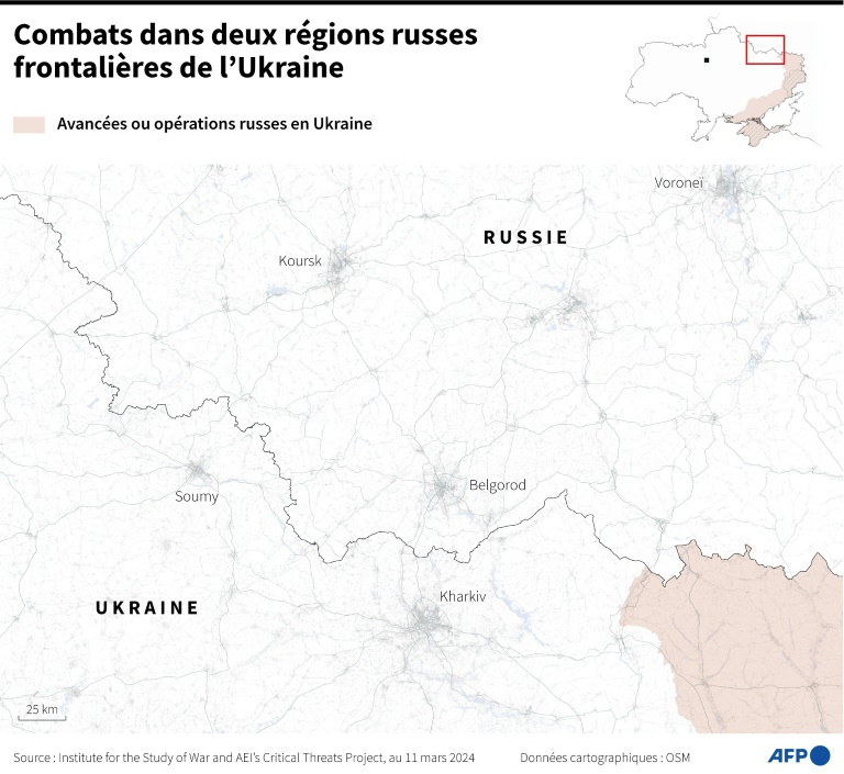 Mais les assaillants ont revendiqué la prise du village frontalier de Tiotkino, dans la région de Koursk. Mercredi, l'un de ses groupes, "Légion Liberté de la Russie" a diffusé une vidéo dans laquelle deux combattants affirment combattre dans la localité.