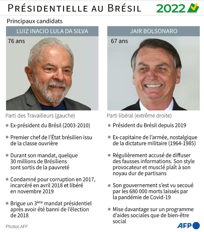 Le président d'extrême droite Jair Bolsonaro et son adversaire Lula se retrouvent tard jeudi pour un ultime débat, à trois jours du premier tour de la présidentielle et après la publication d'un sondage qui confirme le net avantage de l'ex-chef d'Etat de gauche.
