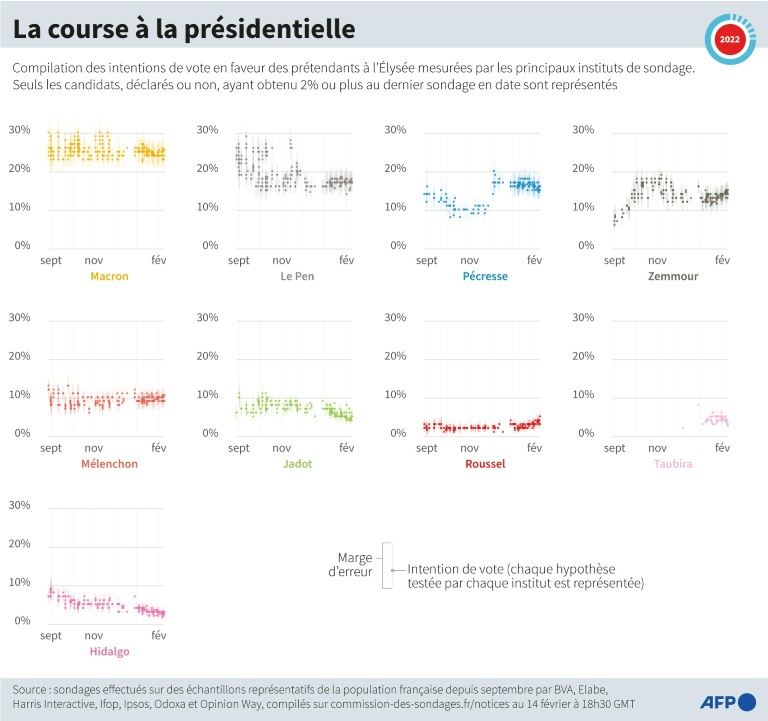 Selon la liste actualisée publiée jeudi par le Conseil constitutionnel, le communiste Fabien Roussel avait 381 parrainages, l'écologiste Yannick Jadot 325, Marine Le Pen (RN) 274, l'Insoumis Jean-Luc Mélenchon 258 et le candidat d'extrême droite Eric Zemmour 181.