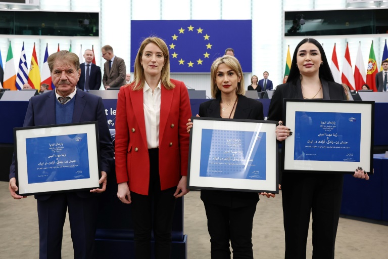 La remise du prix Sakharov est intervenue deux jours après celle du prix Nobel de la Paix à la militante Narges Mohammadi, qui n'a pu se rendre à Oslo recevoir cette récompense car elle est détenue depuis 2021 dans la prison d'Evin de Téhéran.