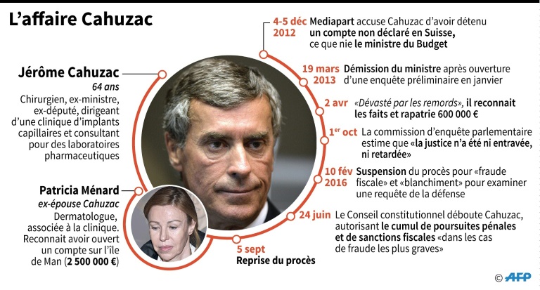 Jugés avec lui, son ex-épouse Patricia Ménard, qui a elle aussi dissimulé de l'argent à l'étranger, et leurs anciens conseillers, le banquier François Reyl et l'ex-avocat Philippe Houman.