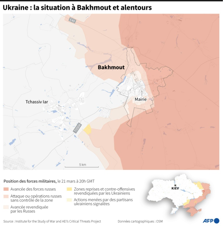 La présidence ukrainienne a annoncé à la mi-journée que Volodymyr Zelensky s'était rendu mercredi sur la ligne de front dans la zone de Bakhmout, épicentre des combats dans l'est de l'Ukraine. "Honoré d'y être aujourd'hui et de décorer nos héros", a déclaré M. Zelensky sur Telegram.