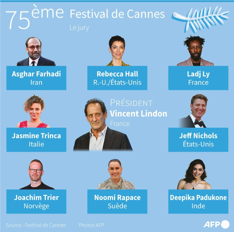 A ses côtés, pour dessiner le palmarès de cette 75e édition, figurent notamment l'actrice et réalisatrice Rebecca Hall ("Vicky Cristina Barcelona"), la révélation de "Millenium" Noomi Rapace, les réalisateurs Asghar Farhadi (Grand prix 2021 avec "Un héros"), Ladj Ly ("Les misérables", prix du jury 2019) et Joachim Trier ("Julie en 12 chapitres").