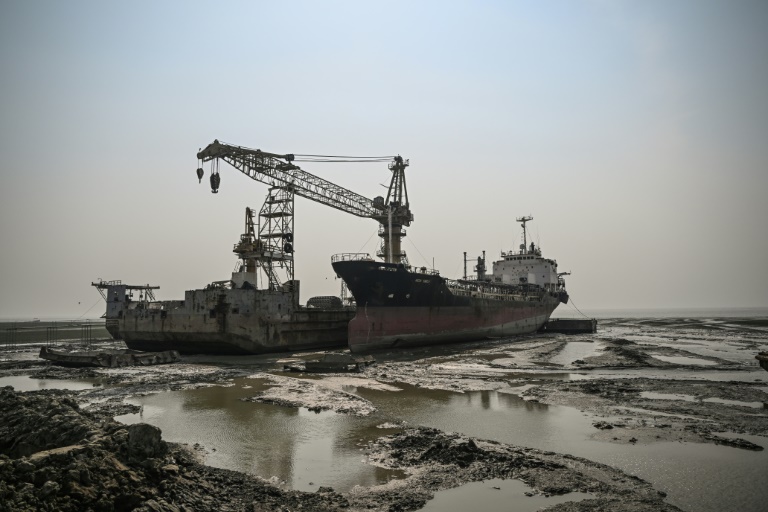 Depuis son village, en retrait de la plage au nord de Chittagong, les grues géantes des chantiers se dessinent à l'horizon. Ici, beaucoup d'hommes travaillent dans le secteur et partagent le même destin: peu avant la rencontre avec l'AFP en février, un des voisins de Mizan Hossain a eu les doigts de pied écrasés sur un autre chantier.