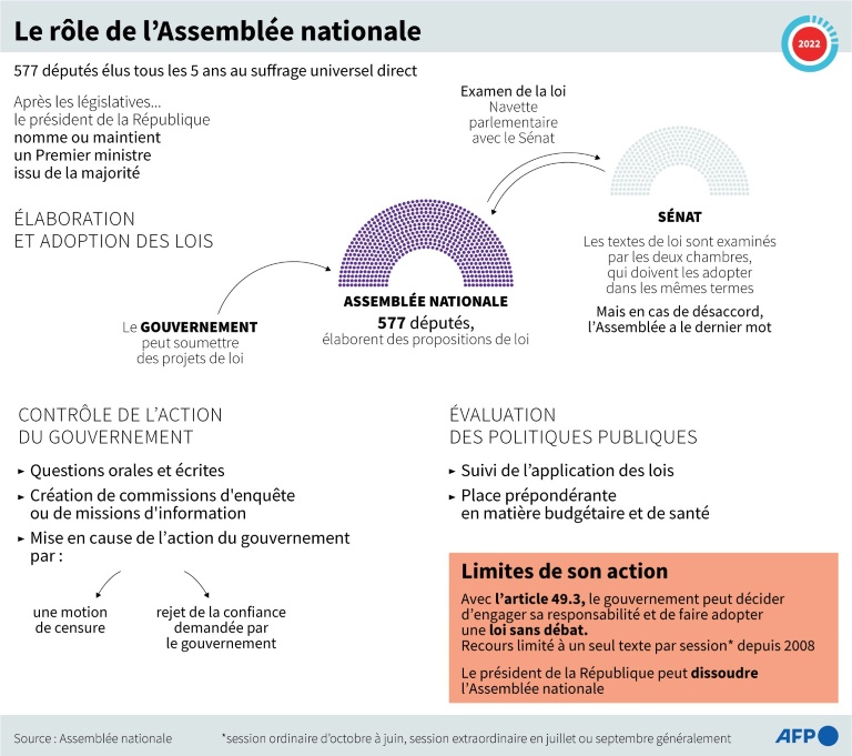 Pour l'heure, le bloc présidentiel est crédité de quelque 26% d'intentions de vote aux législatives et conserverait une majorité à l'Assemblée, défié toutefois par la Nouvelle union populaire écologique et sociale entre LFI, EELV, PS et PCF (Nupes), qui obtiendrait 28% et le Rassemblement national (24%) de Marine Le Pen.