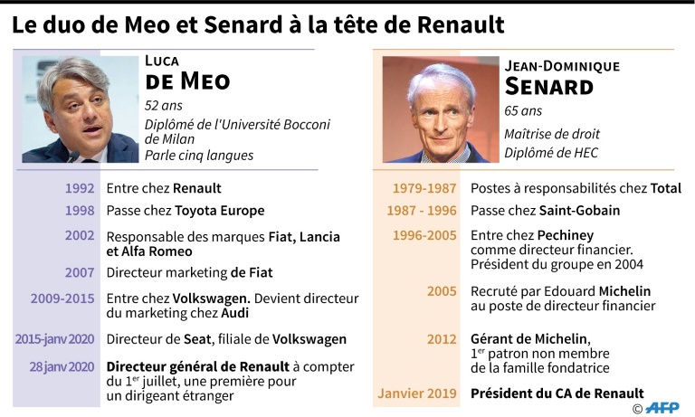 Le président de Renault, Jean-Dominique Senard, arrivé il y a un an, a affirmé sa confiance dans la nouvelle équipe dirigeante, avec l'arrivée prévue en juillet de Luca de Meo, transfuge de Seat (groupe Volkswagen) et aussi le recrutement de Gilles Le Borgne, chef de l'ingénierie venu du rival PSA (Peugeot, Citroën). "L'intensité du travail de l'alliance n'a jamais été aussi forte depuis que j'ai rejoint le groupe", a assuré M. Senard, laissant entendre que la phase d'instabilité, qui a suivi l'arrestation de Carlos Ghosn au Japon sur une dénonciation de Nissan en novembre 2018, était désormais surmontée.