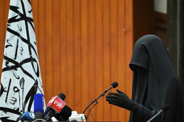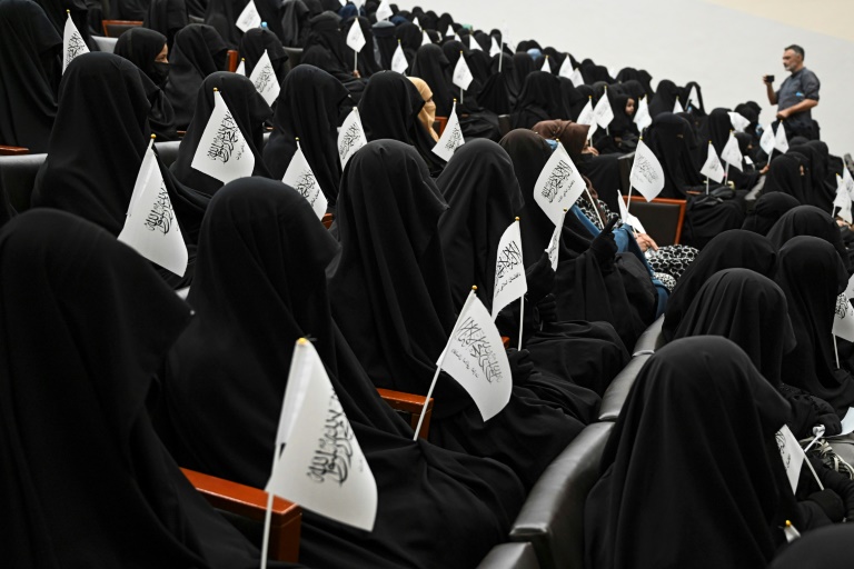 Les images sont saisissantes: un amphithéâtre rempli de femmes souvent en niqab noir, et agitant les drapeaux blancs de l'Emirat islamique d'Afghanistan (le régime des talibans) en écoutant les oratrices venues défendre les mesures du nouveau régime.