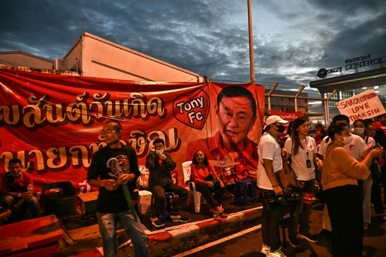 Pancartes, chansons... Ses partisans se sont réunis devant l'aéroport Don Mueang de Bangkok, où l'ancien chef du gouvernement, au pouvoir entre 2001 et 2006 avant d'être renversé par un coup d'Etat, est attendu vers 09h00 (02h00 GMT).
