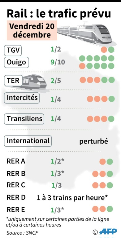 Une trêve complète pour les fêtes paraît hors de portée: si l'Unsa ferroviaire, 2e syndicat de la SNCF, a invité jeudi à "une pause pour les vacances scolaires", la CGT-Cheminots et SUD-Rail, 1ère et 3e fédérations syndicales de la compagnie, ont décidé de continuer le mouvement.