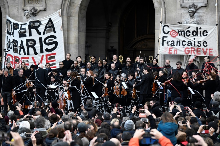 Côté culture, l'Orchestre et le Choeur de l'Opéra de Paris, en grève depuis un mois et demi contre la fin du régime spécial dont bénéficie l'établissement, ont offert samedi un concert sur les marches du Palais Garnier, avec des représentants de plusieurs corps de métier. Donnée devant une foule dense de Parisiens, de touristes, mais aussi d'enseignants grévistes, la prestation s'est achevée avec une "Marseillaise" sous des jets de confettis, des applaudissements nourris ou des "vive la grève!" lancés par des spectateurs.