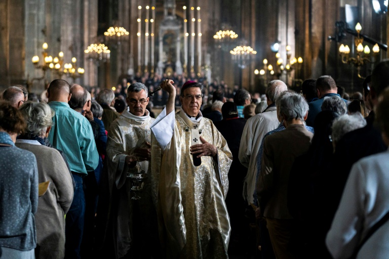 La file devant l'église parisienne de Saint-Eustache s'étire sur des centaines de mètres: les catholiques se pressaient dimanche à la messe de Pâques six jours après l'incendie de Notre-Dame, certains voulant croire à "un renouveau" de l'Eglise après une période marquée par des scandales sexuels.