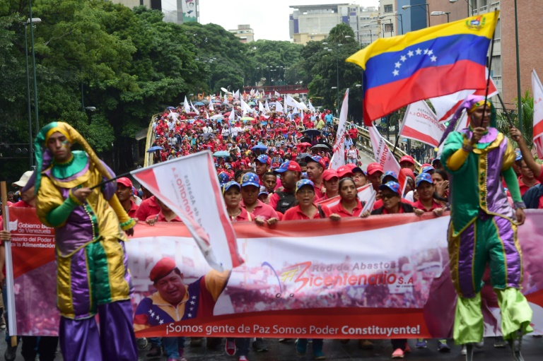 Au son de la chanson "Yankee go home!" ("Les Américains, rentrez chez vous!"), les partisans du gouvernement, vêtus de rouge - la couleur traditionnel du chavisme, le courant au pouvoir -, étaient rassemblées face au palais présidentiel à Caracas, où le chef de l'Etat devait s'exprimer plus tard dans la journée.