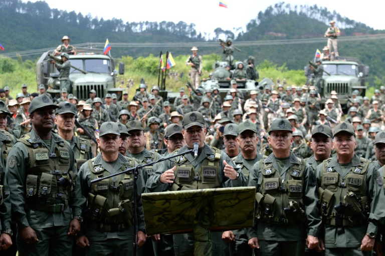 Entouré de chars et de centaines de soldats armés, le ministre de la Défense Vladimir Padrino Lopez s'est exprimé devant la presse pour renouveler le soutien précieux de l'armée au président, dénonçant les menaces "délirantes" et "folles" de M. Trump.