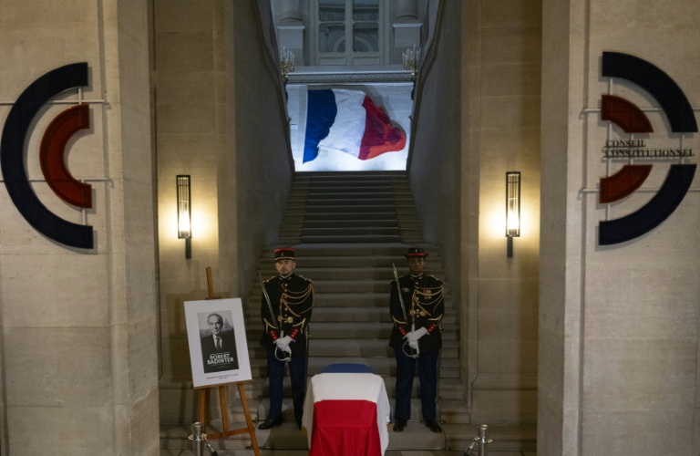 Peu avant, le cénotaphe, cercueil au nom de l'ancien avocat et garde des Sceaux décédé en février 2024 à l'âge de 95 ans, était entré dans l'ancienne église du centre de Paris, devenue monument funéraire portant sur son fronton la devise "Aux grands hommes, la patrie reconnaissante".