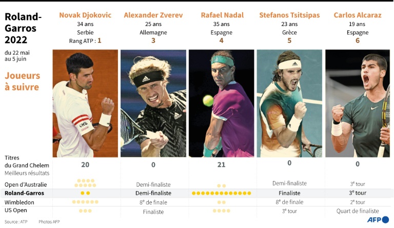 Chasse au record pour Nadal et Djokovic, avènement pour Alcaraz, consécration pour Zverev ou Tsitsipas, confirmation pour Swiatek: l'édition 2022 de Roland-Garros qui débute dimanche présente de nombreux enjeux et s'annonce ouverte.